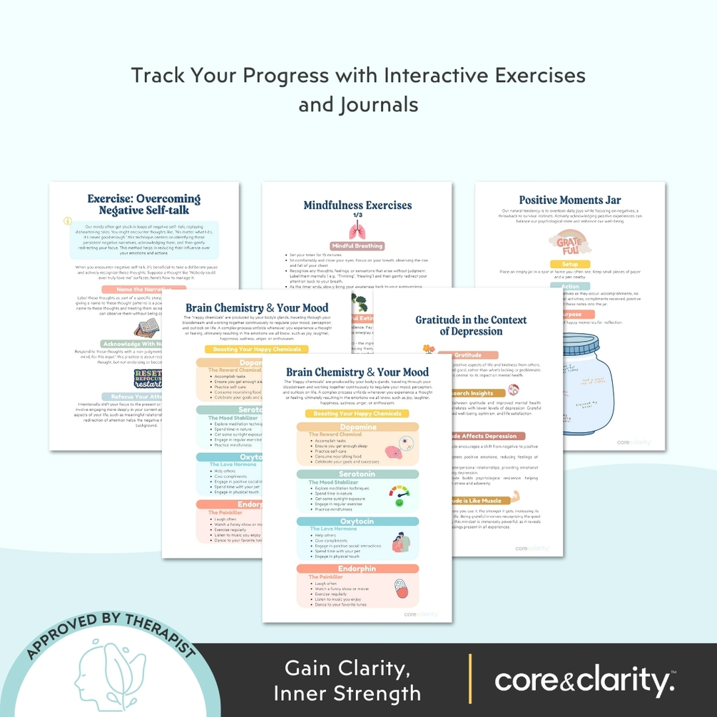 • Cognitive Behavioral Therapy (CBT) Framework – Learn proven techniques to reframe negative thoughts.